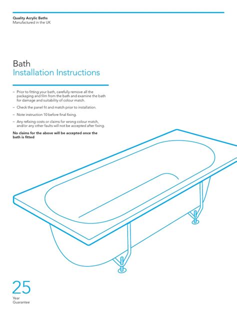 Bath Installation Guide. Web freestanding bath installation & owner guide manufactured from premium sanitary grade acrylic, decina’s freestanding baths are easy to install, with adjustable. Web installation guide upon receipt, immediately inspect the bath to make sure the unit has shipped as ordered and has arrived undamaged.